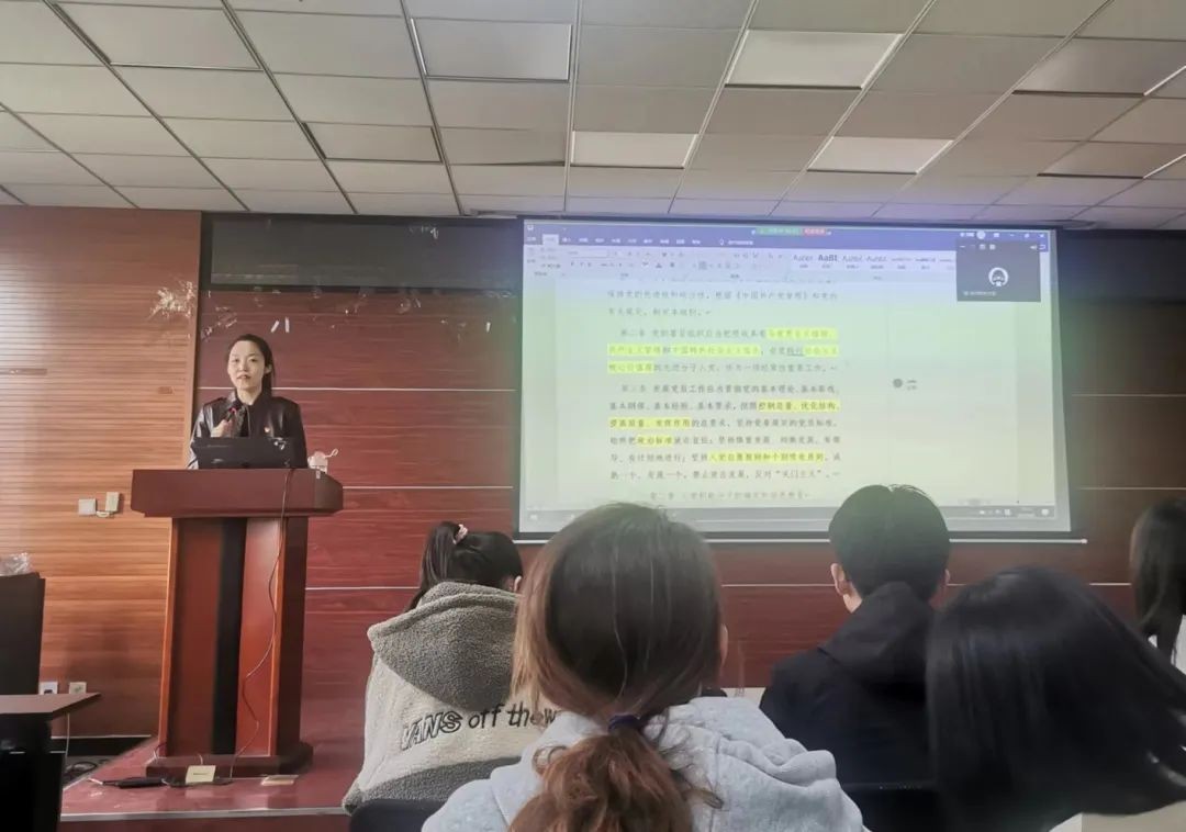 本次党课中,郭鹏慧老师强调了中共二十大后党章中修改的部分,并让同学们将党员的权利和义务、入党誓词等重要内容烂熟于心,从而能更好的了解党、认识党、热爱党。在以后的学习生活中,积极分子要以党员的标准严格要求自己,以实际行动积极向党组织靠拢,争取早日成为一名共产党员。