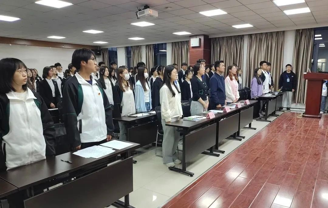 仪式开始前,在主持人的带领下,全体参会成员起立共唱共青团团歌。学员们昂扬的风貌、坚定的眼神,体现了勇担重任的信念和争做新时代有为青年的决心。