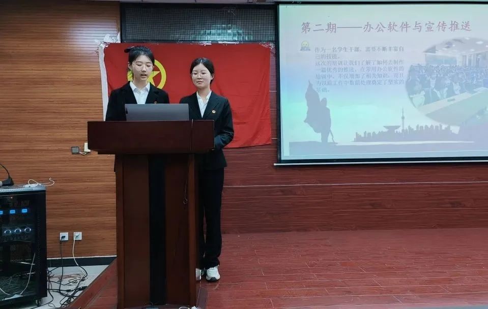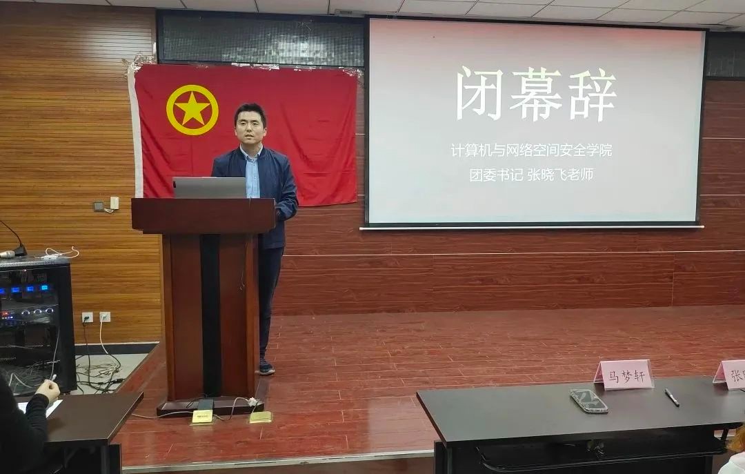 最后,团委书记张晓飞老师致结业辞,他总结了本期学员们的学习情况和本次学员代表们的汇报情况。张晓飞老师对学员们作出了美好的寄语,提醒学员们仍然需要奋斗,要在工作中一丝不苟,在学习中努力认真,在各种重要时刻展现计算机青马人的风采。