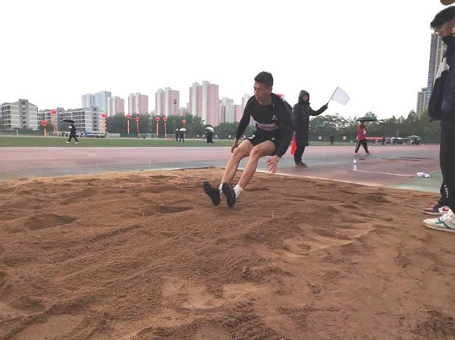 在步伐优美的助跑后,身体在空中划过一道弧线,沉身、收脚、落下,欢呼声响起。