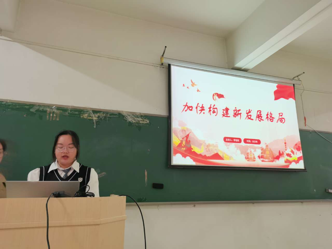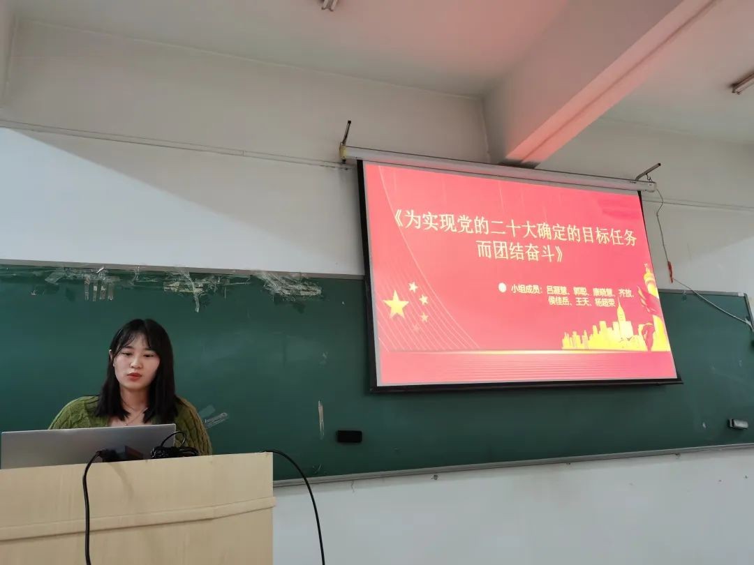 九组同学分享结束后,胡晗萌老师与同学们分享了自己关于这些时事的看法:去年学校发生了疫情,是老师们、同学们和学校共同努力克服了种种困难,我们要永远记得这段时间,在今后要相信老师和学校是始终和我们在一起的;二十大是我国发展的一个关键点,要学习好二十大报告,结合自己所学的专业,为国家的建设和发展更好地做出贡献。