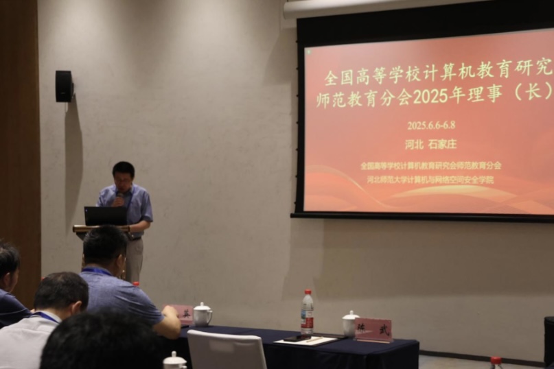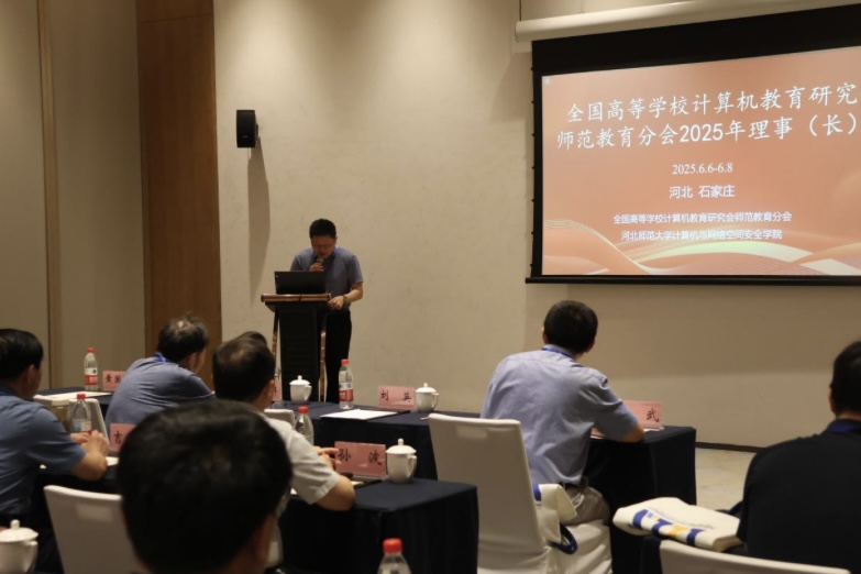 2025年6月6日-8日,“全国高等学校计算机教育研究会师范教育分会2025年学术沙龙&理事长会”在河北省石家庄市成功举办。本次会议由全国高等学校计算机教育研究会师范教育分会和pg电子官方网站 - pg电子试玩版下载中心 共同主办,来自分会理事长单位的计算机教育领域专家、学者齐聚一堂,共同围绕人工智能如何赋能教育创新,增进高等教育院校创新人才培养、计算机教育研究及一流课程建设等前沿话题展开深入研讨与交流。分会理事长陈武教授,河北师范大学党委常委、副校长刘英教授出席会议并致辞,pg电子官方网站 相关领导及多位教师代表参加。